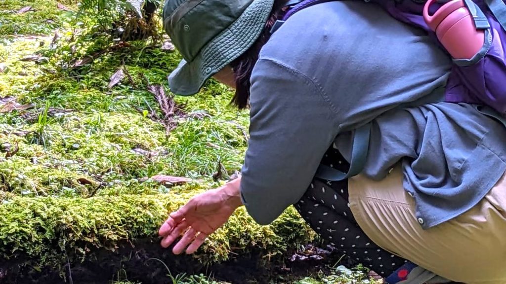 ウォーキングでは色んな種類の草木やお花の説明を聞くだけでなく実際に触れたりできてとても興味深かったです。そして休憩の時に裸足になって苔の上を歩いたのがとても気持ち良くやみつきにました。歩行瞑想では普段行う座る瞑想とはまた違い、自然の中に包まれるような感覚で呼吸が自然と深くなり心が落ち着きました。素敵な癒やし体験をありがとうございました。